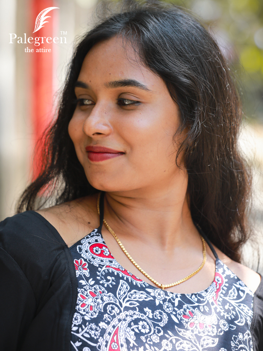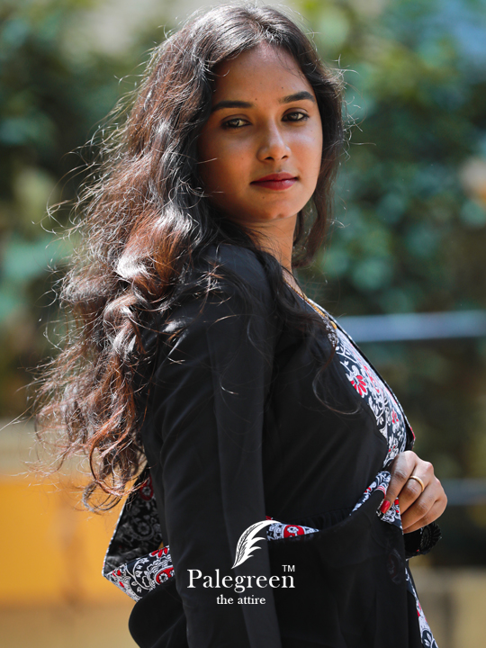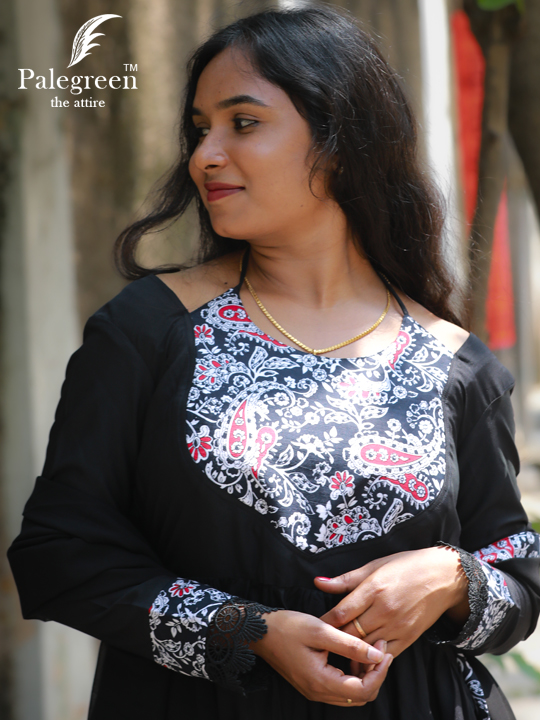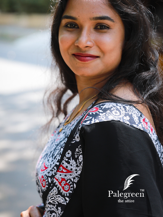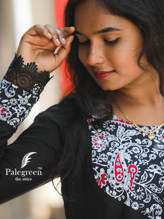 ๐งต Fabric: Premium Georgette, Cotton, and Crepe ๐จ Colour: Classic black with contrast ethnic-inspired prints ๐ฆ Includes: Kurti + Pant + Dupatta