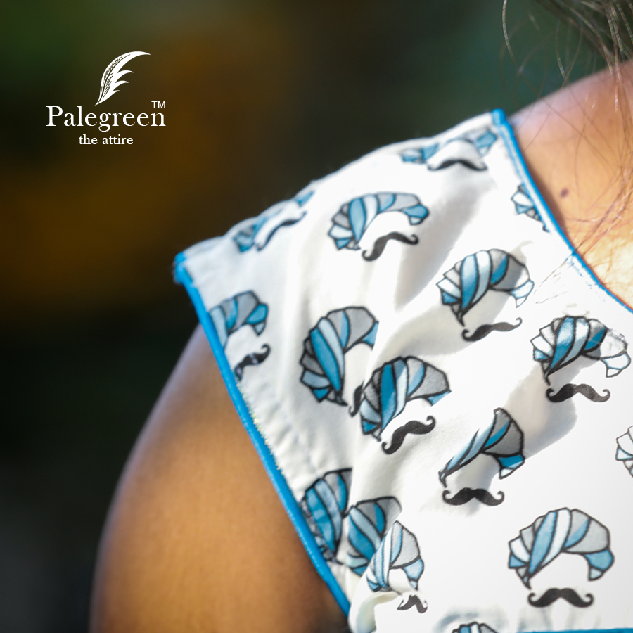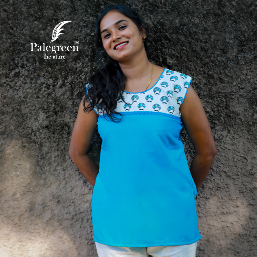 Fabric: Cotton with Soft Cotton Colour: White and Teal Blue Includes: Short Top only